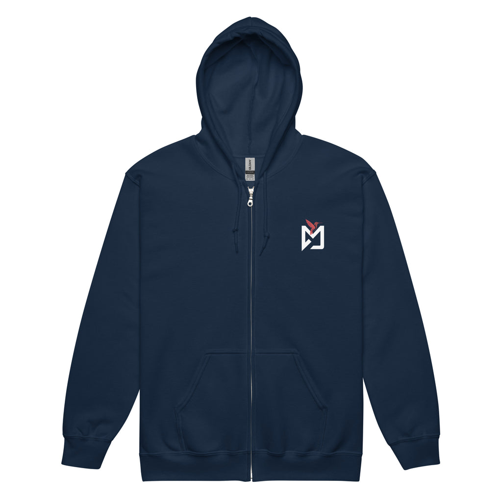 Designed with style and comfort in mind, this hoodie will quickly become your new favorite. It’s made from soft fleece inside and outside, with a sturdy metal zipper, convenient front pockets, and a hood with color-matched drawstrings.